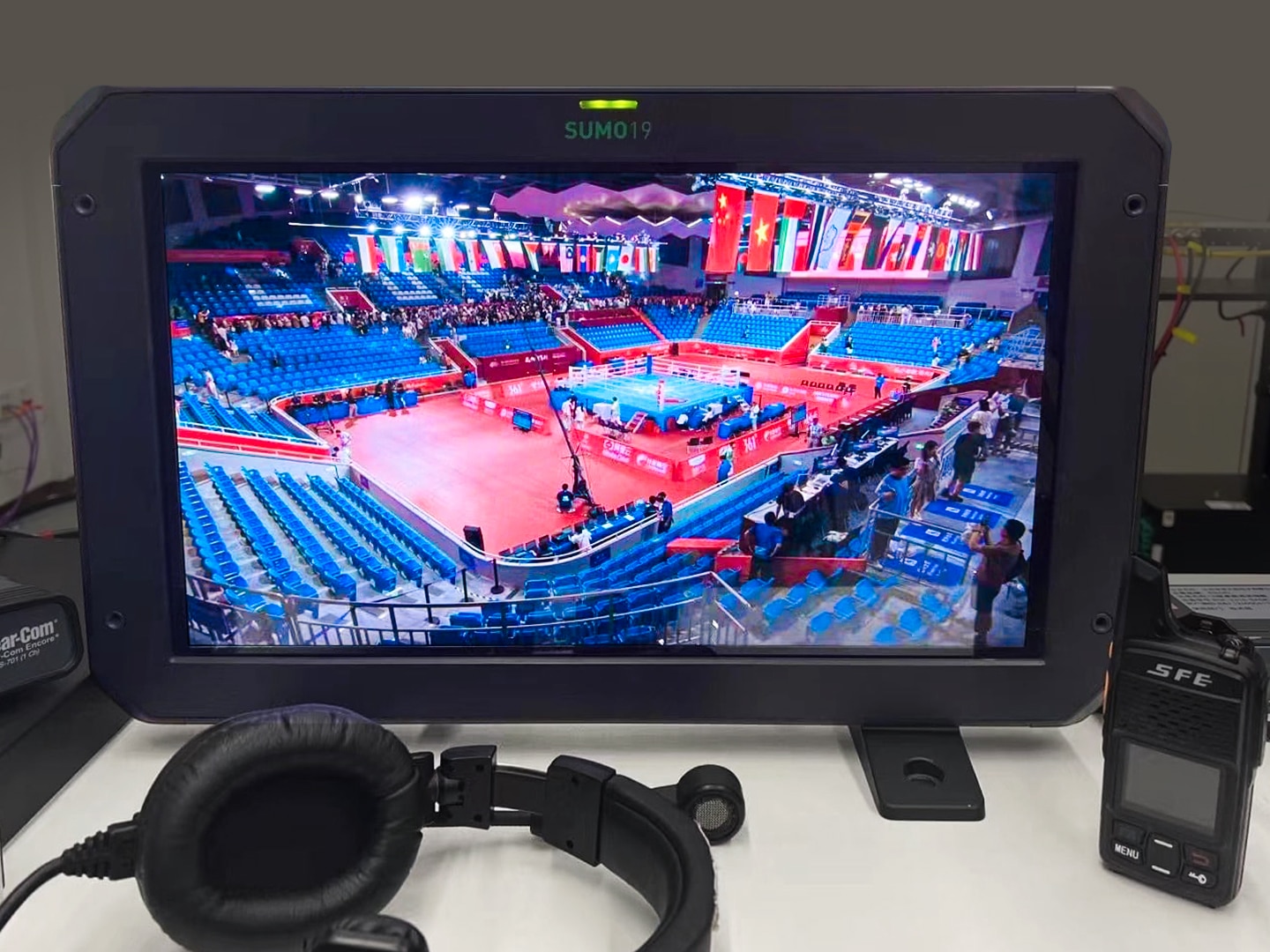 The Studio 2 enabled teams to playback broadcast test signals sent through fibreoptic studio transmission link via codec compression, which were then transmitted to control rooms at the International Broadcast Centre for review. The larger Sumo monitor converted SDI video signals and gave them a clear overview of the data on its impressive 19-inch, 1200 nit screen. When signal tests were completed, the Sumo came into its own, providing the team with a high-quality feed of the venue’s set-up.