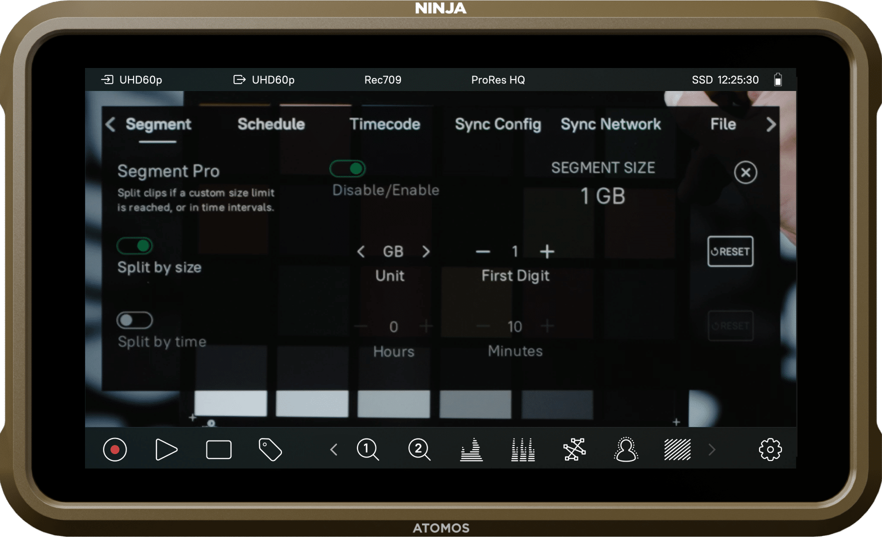 SegmentPro is another powerful new tool exclusive to our completely redesigned AtomOS 11 operating system. It allows you to segment/split long recordings into user-defined chunks, adding even more flexibility to the production workflow. The segmenting can be defined by setting a custom file size limit, in GB or TB, or by time, all without dropping a frame.