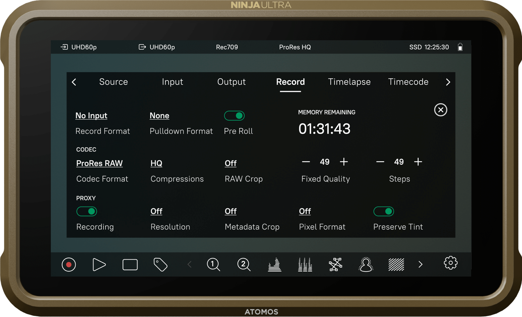 Ninja Ultra includes comprehensive monitoring tools to help you get the perfect composition and exposure in every shot. Easy-to-use but powerful tools include waveform, focus peaking, false color, zoom controls, custom LUTs, and frame guides. Ninja’s Ultra’s new AtomOS 11 software is simple to update with new features and releases – as well as support for new cameras.