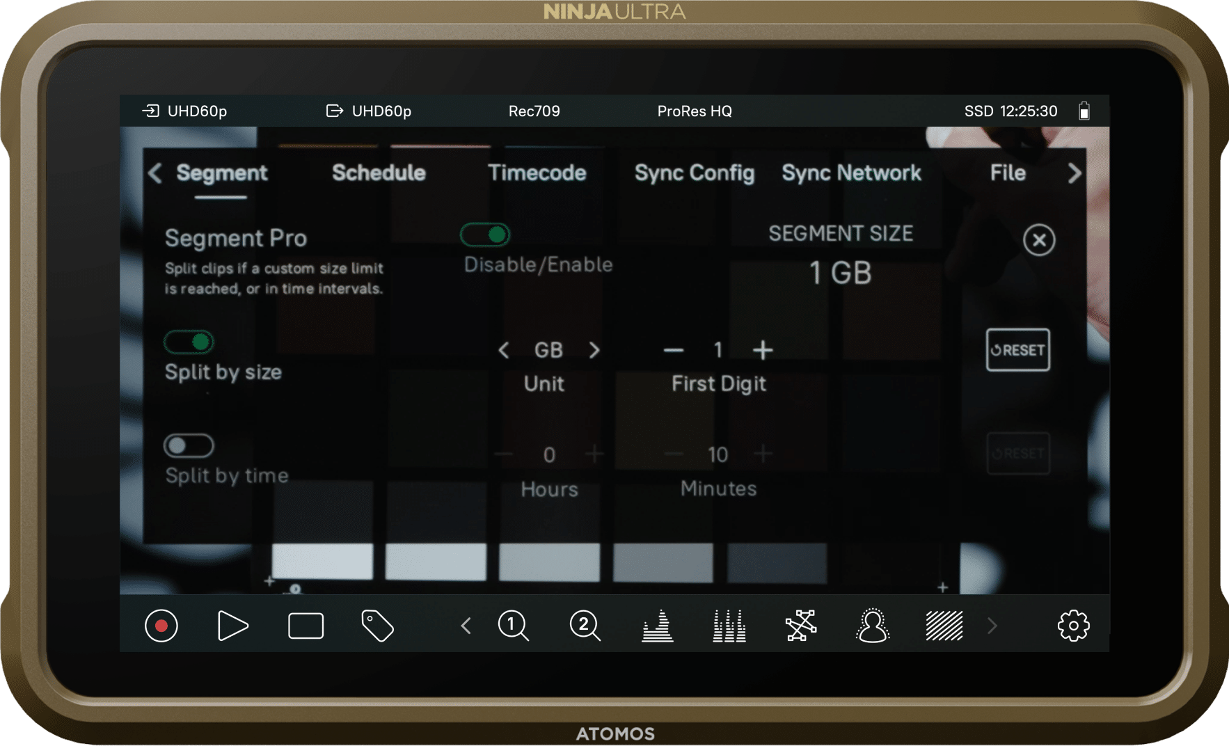 SegmentPro is another powerful new tool exclusive to our completely redesigned AtomOS 11 operating system. It allows you to segment/split long recordings into user-defined chunks, adding even more flexibility to the production workflow. The segmenting can be defined by setting a custom file size limit, in GB or TB, or by time, all without dropping a frame.