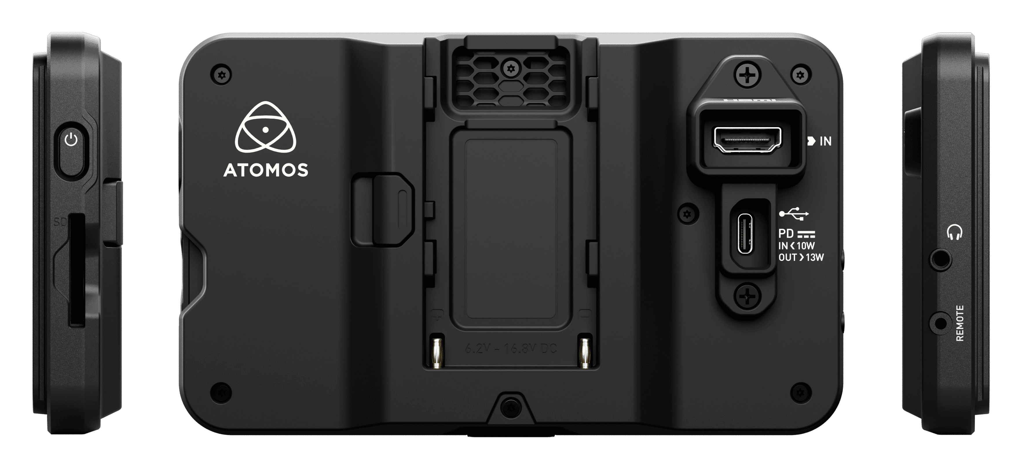 Power the Shinobi with industry-standard Sony NP-F batteries, via AC with the Atomos battery eliminator, or USB-C PD with a USB charging dock or a USB power bank for maximum versatility. Available separately from the Atomos online shop or your favourite professional reseller.