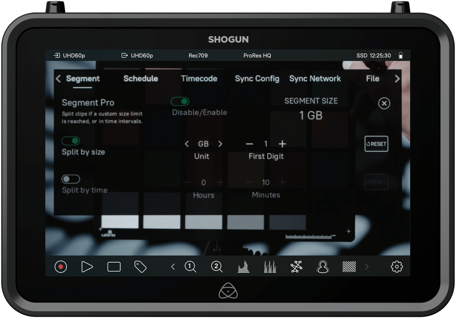 SegmentPro is another powerful new tool exclusive to our completely redesigned AtomOS 11 operating system. It allows you to segment/split long recordings into user-defined chunks, adding even more flexibility to the production workflow. The segmenting can be defined by setting a custom file size limit, in GB or TB, or by time, all without dropping a frame.